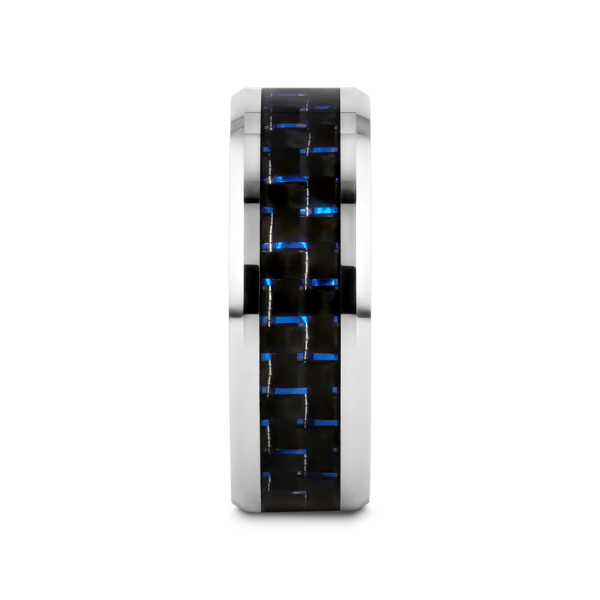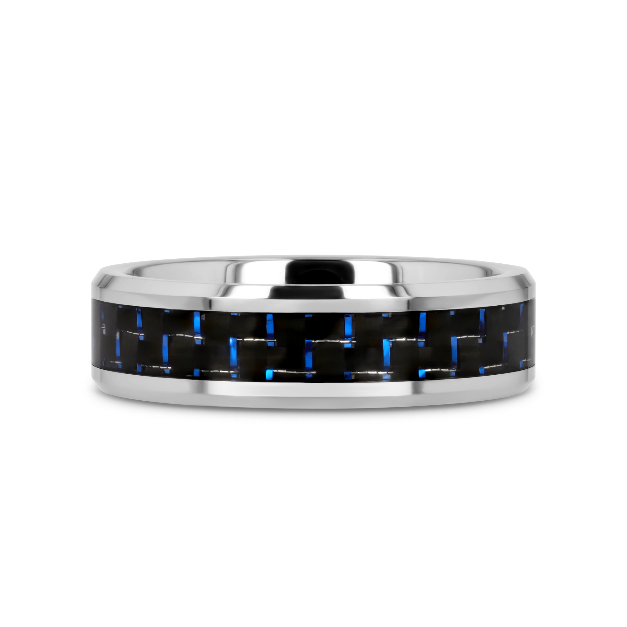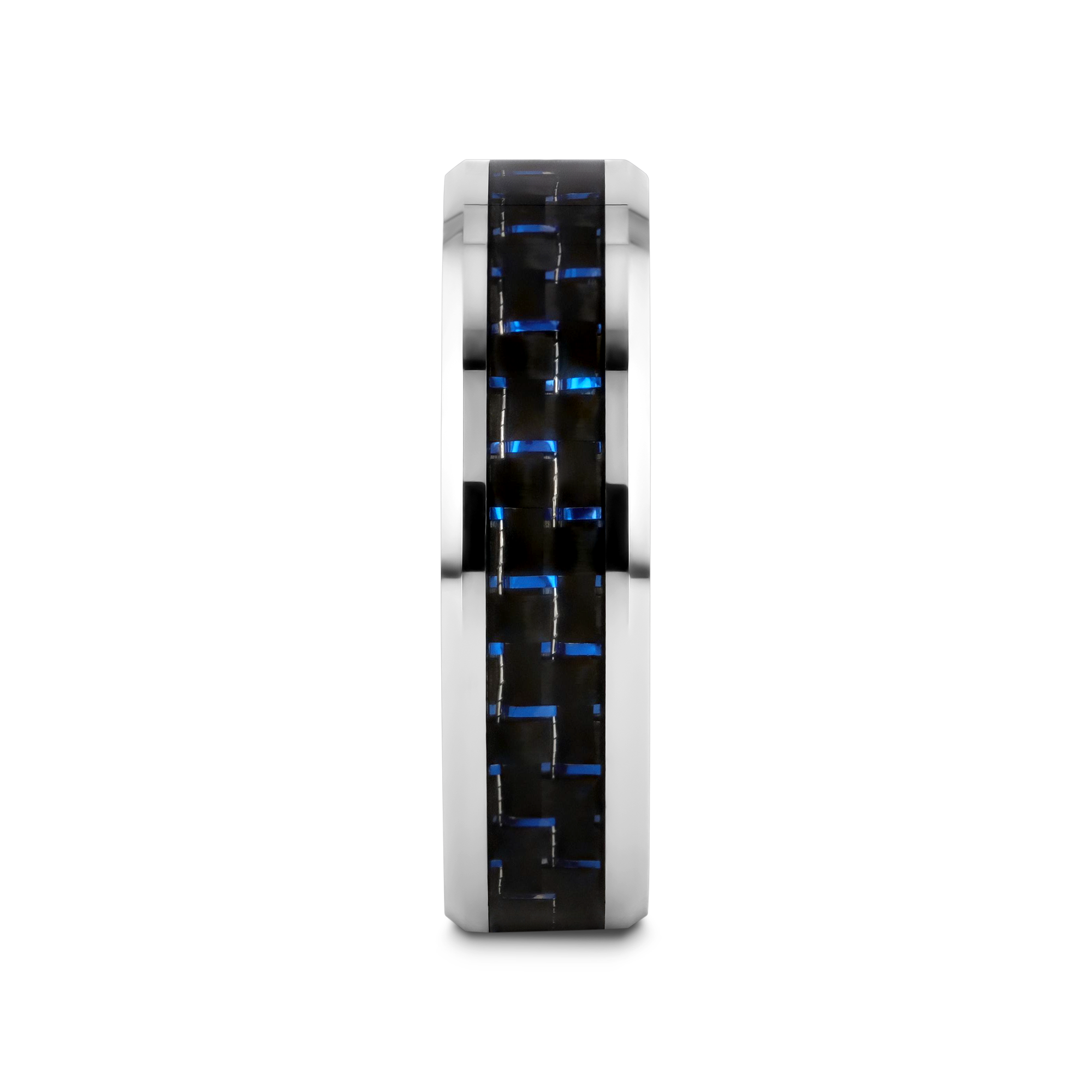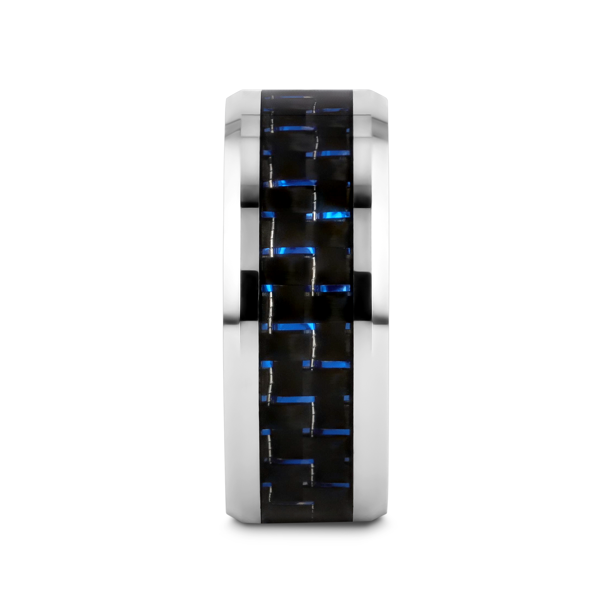 AUXILIUS Tungsten Carbide Ring with Black and Blue Carbon Fiber Inlay - 6mm - 10mm