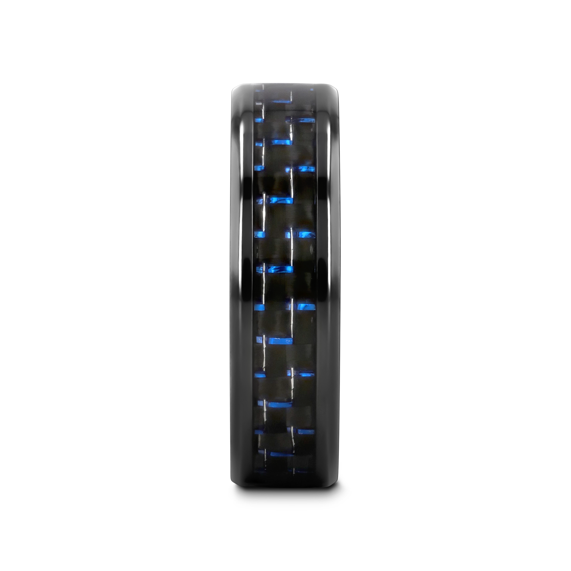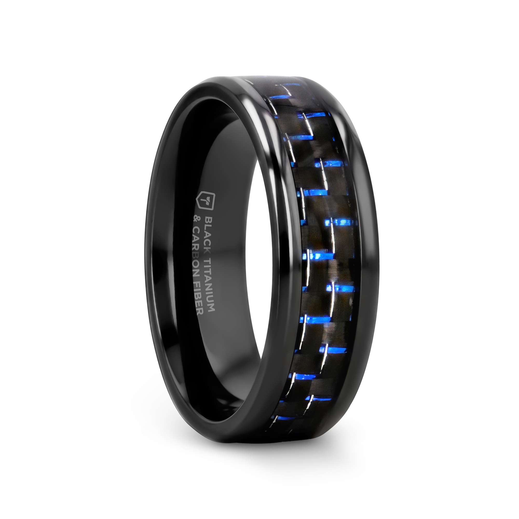 ZAYDEN Black Titanium Ring with Blue and Black Carbon Fiber Inlay and Bevels - 8mm