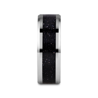 HALLEY Tungsten Carbide Black Opal Inlay Men’s Wedding Band with Beveled Edges - 8mm