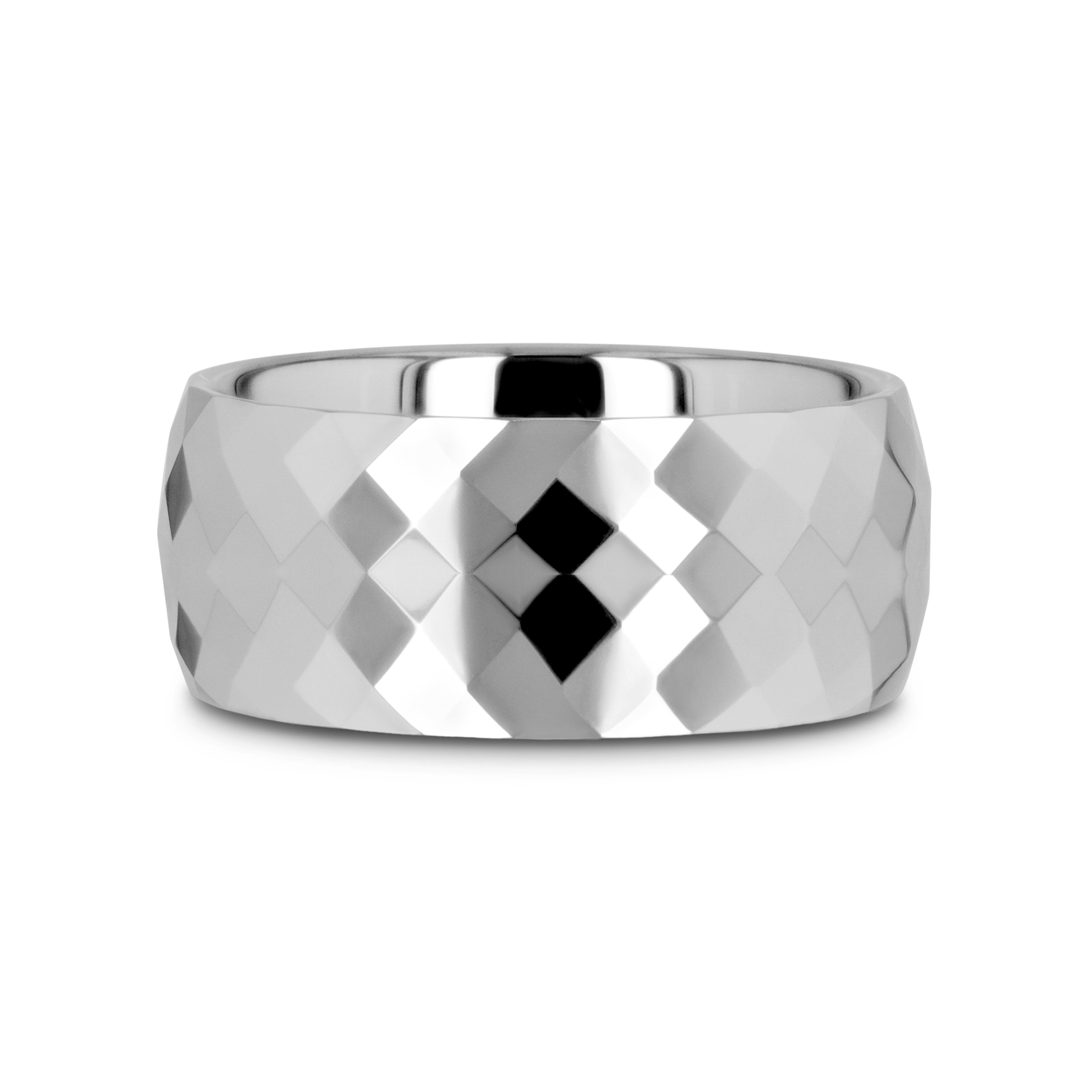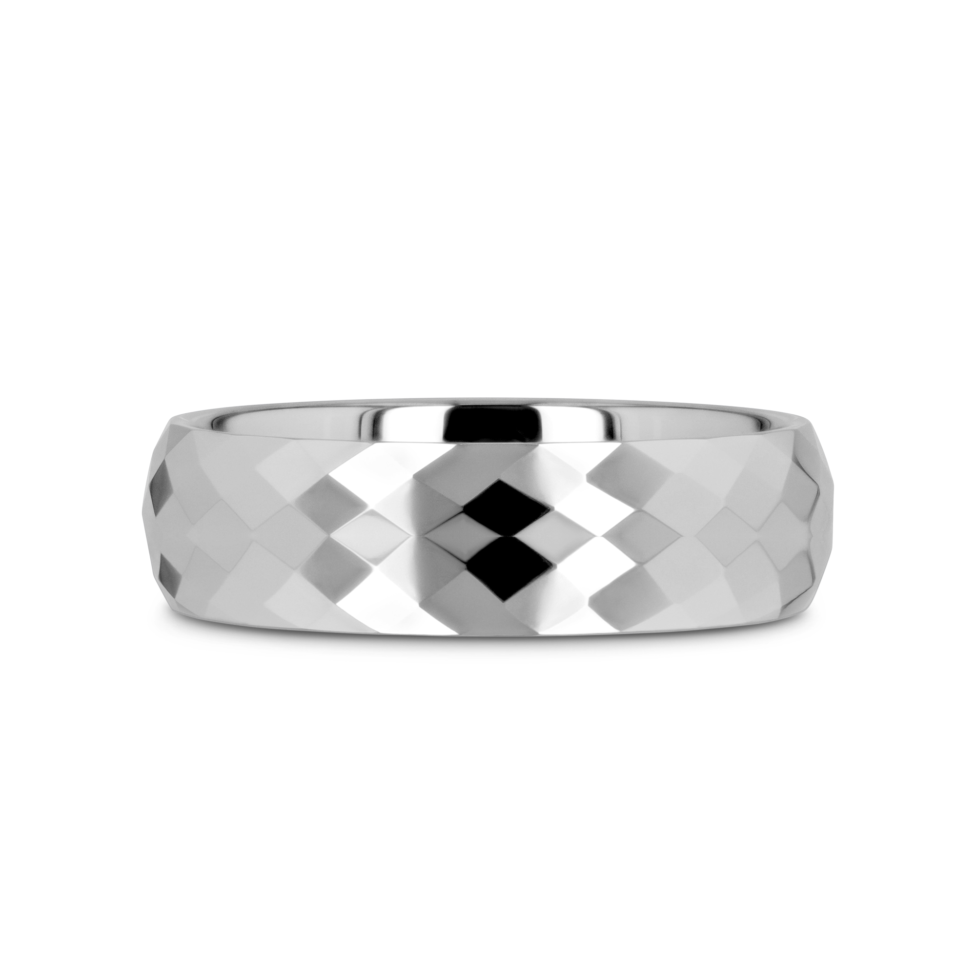This precision crafted 2mm style from our tungsten rings for women line is polish finished and has diamond shaped facets going around the center of the entire ring to give a brilliant shine. The raw strength of tungsten carbide is most evident in this plain non-coated tungsten ring. This is the perfect wedding band for a woman to represent the strength of her eternal love and devotion.