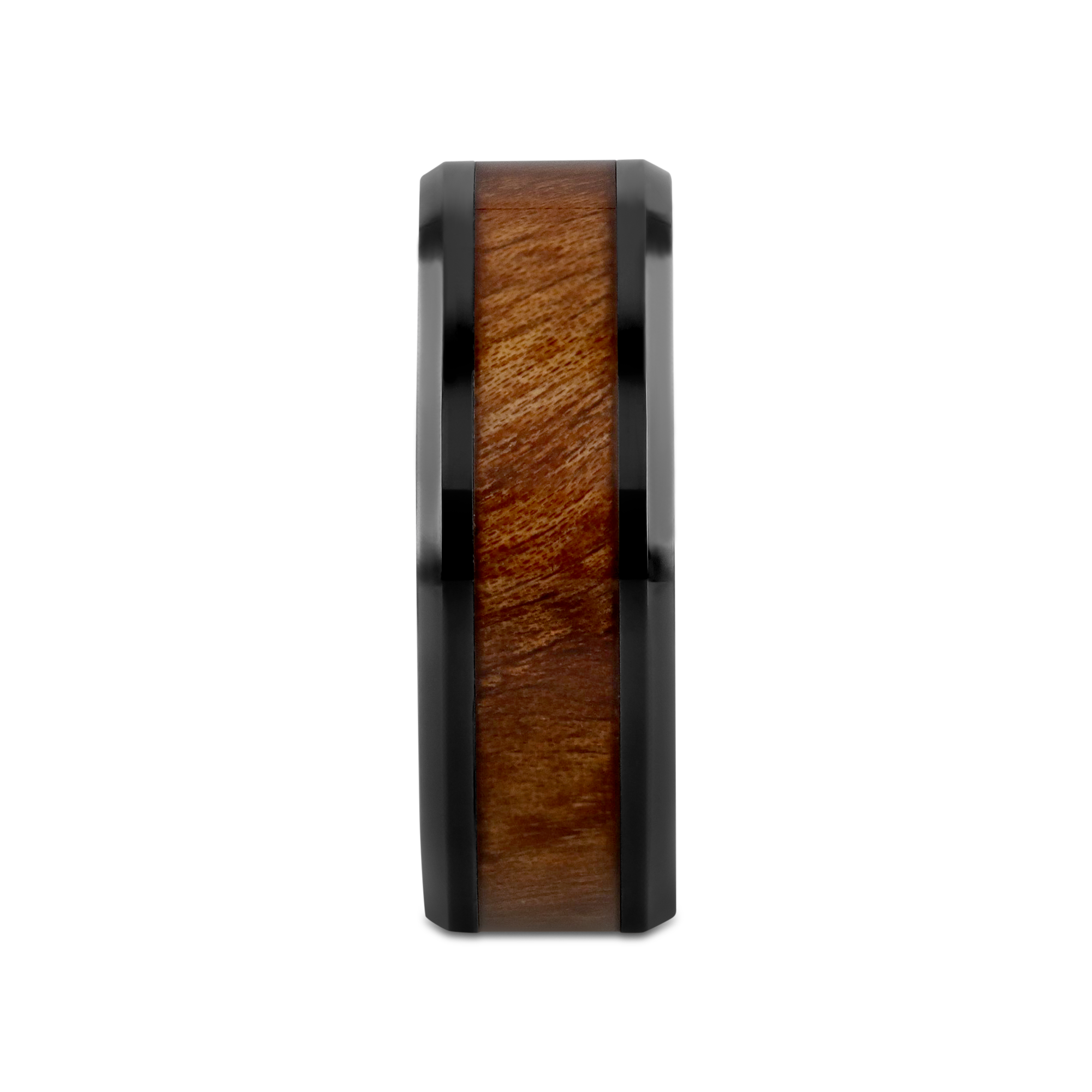 THRACIAN Carpathian Wood Inlaid Black Ceramic Ring with Bevels - 6mm and 8mm