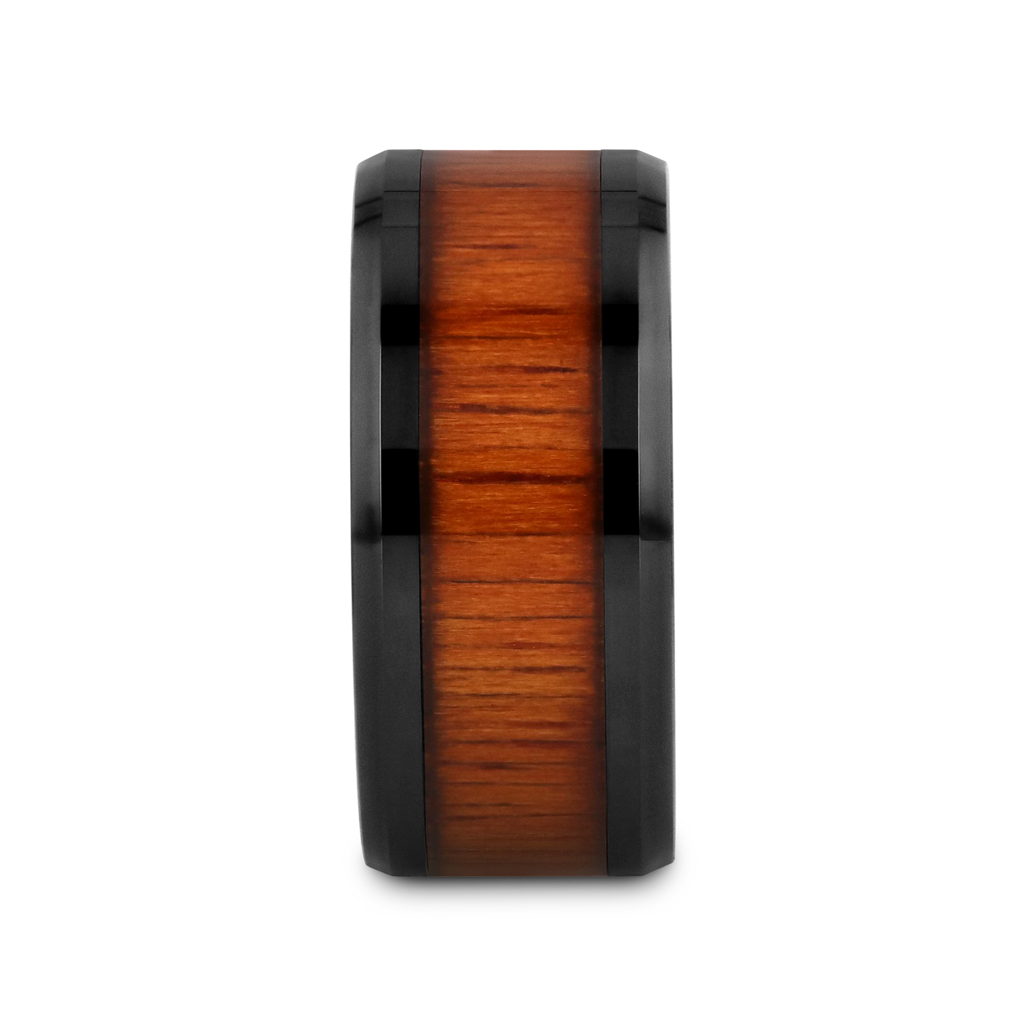 ACACIA Koa Wood Inlaid Black Ceramic Ring with Bevels - 4mm - 12mm