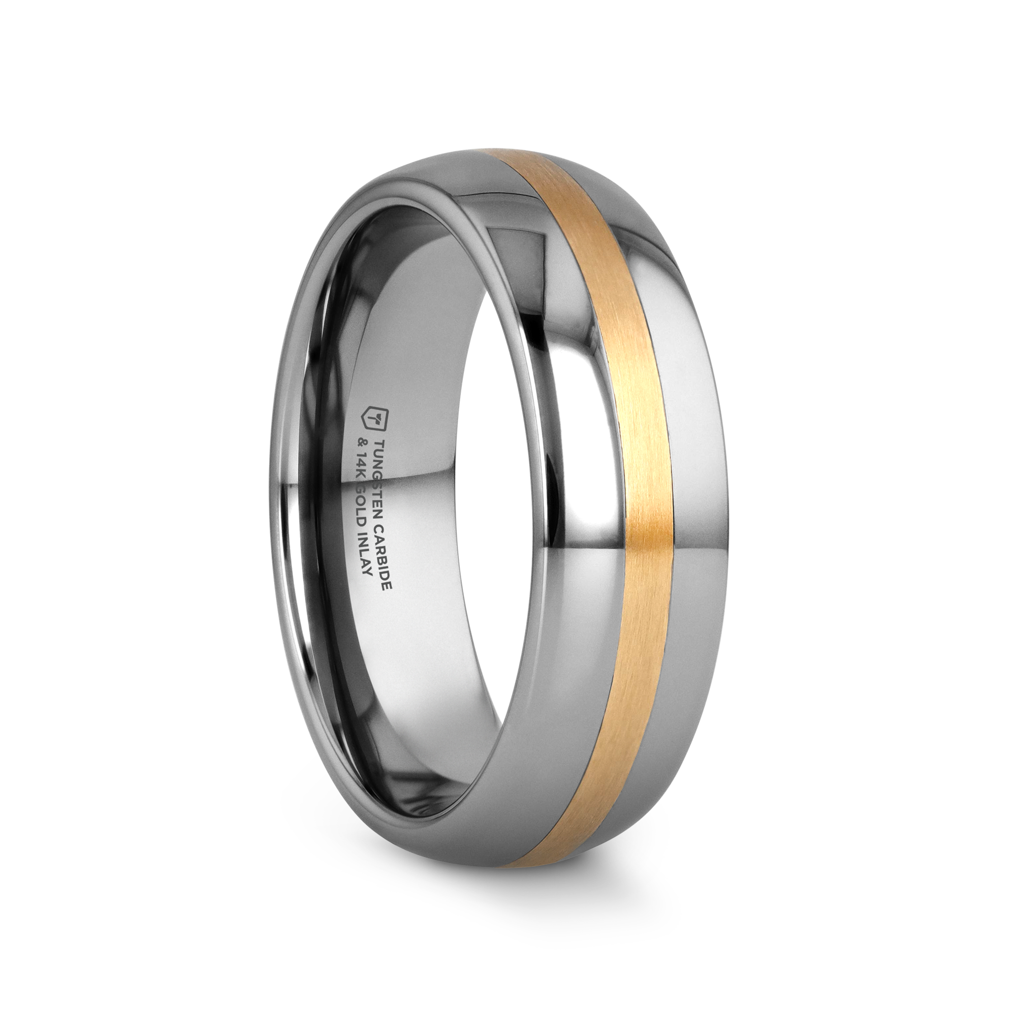 CENTURION 14K Gold Inlaid Domed Tungsten Ring 6mm or 8mm