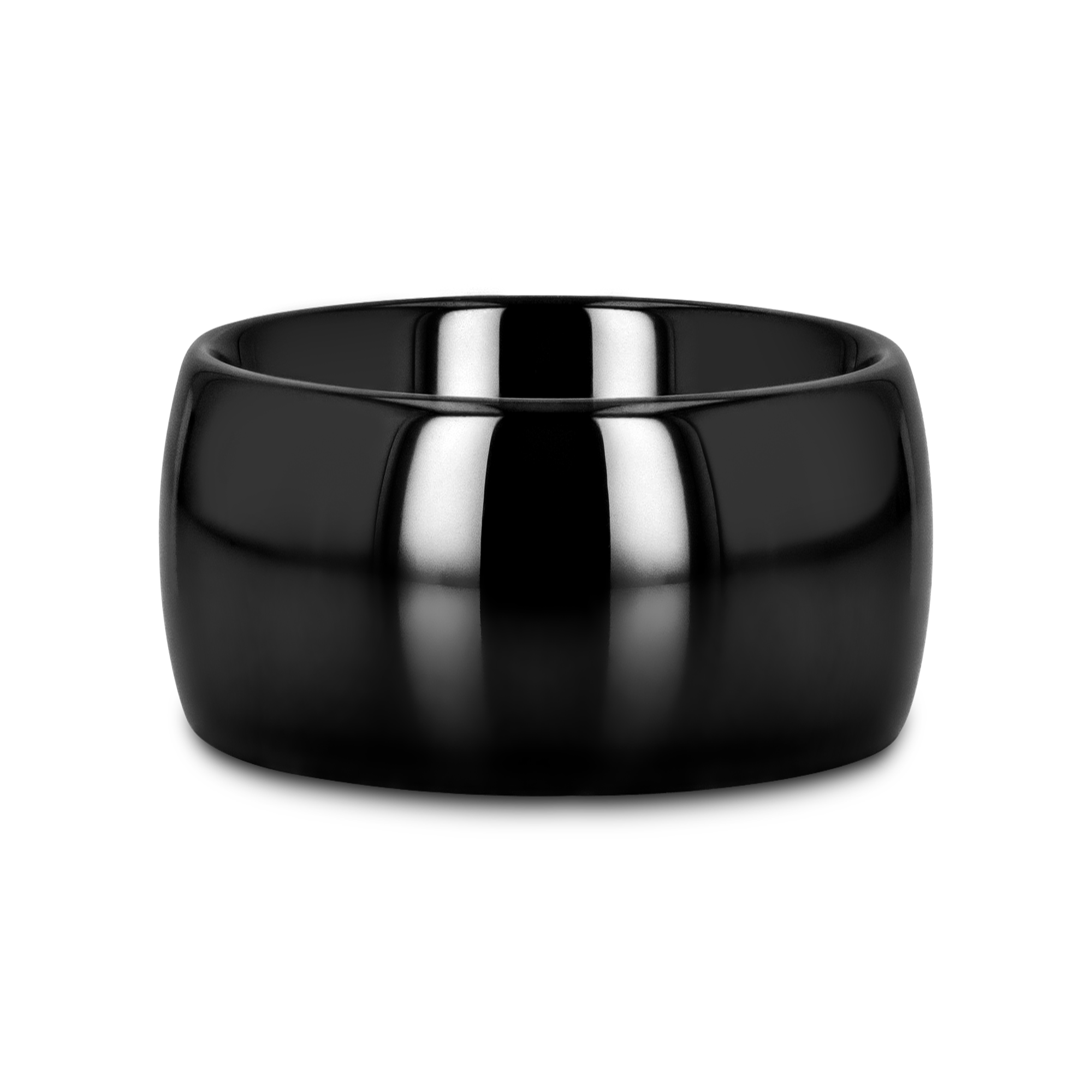 This traditional domed style from our ceramic wedding bands line is black like black tungsten and comes with a polished finished to give it a glossy shine. This ring comes in 2mm, 4mm, 6mm, 8mm, 10mm and 12mm wide for couples who want a matching set and can be worn as a Wedding Ring or Promise Ring.