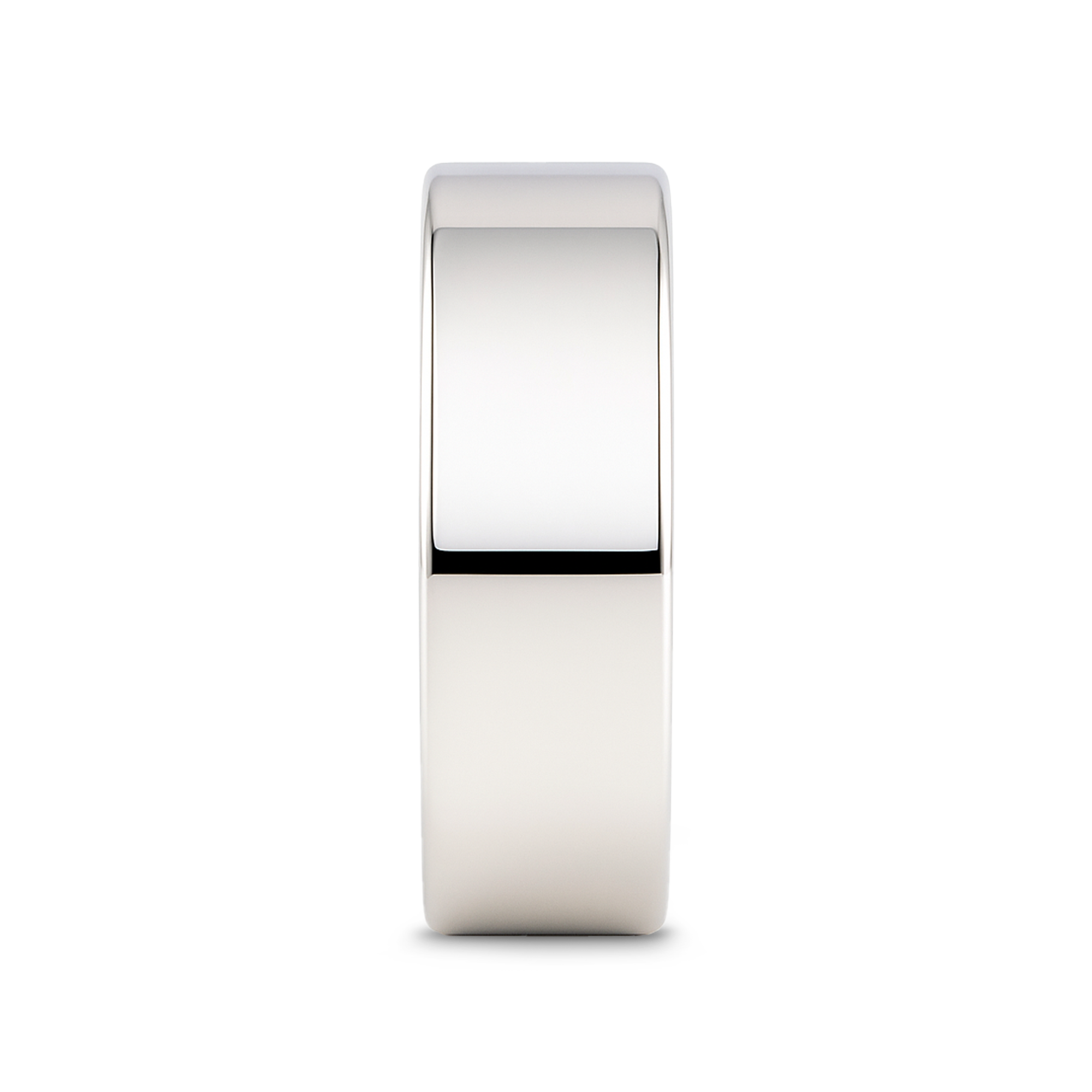 This traditional white tungsten style from our White Tungsten Rings line is made primarily for those who love the enduring strength of tungsten and the light white color of platinum. This classy elegant band has a flat design with a highly polished mirror like finish and comes in 2mm, 4mm, 6mm, 7mm, 8mm, 10mm and 12mm wide for couples who which to have a matching set. White tungsten is made by embedding rhodium, a platinum group metal, into the surface of a tungsten band.