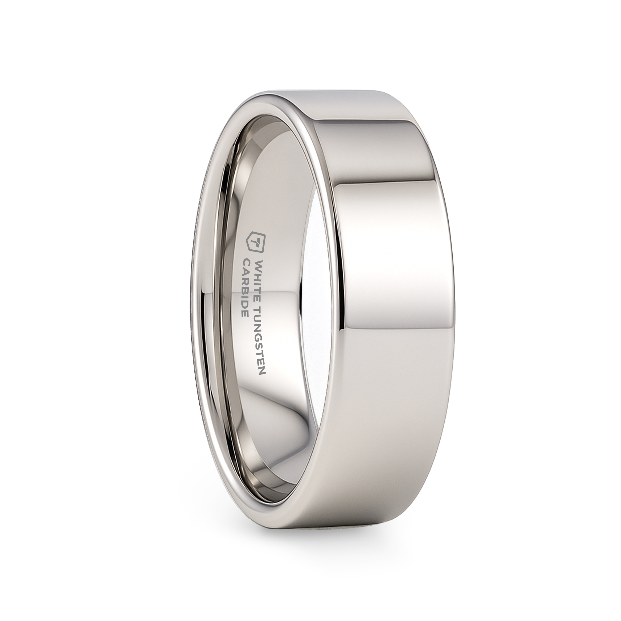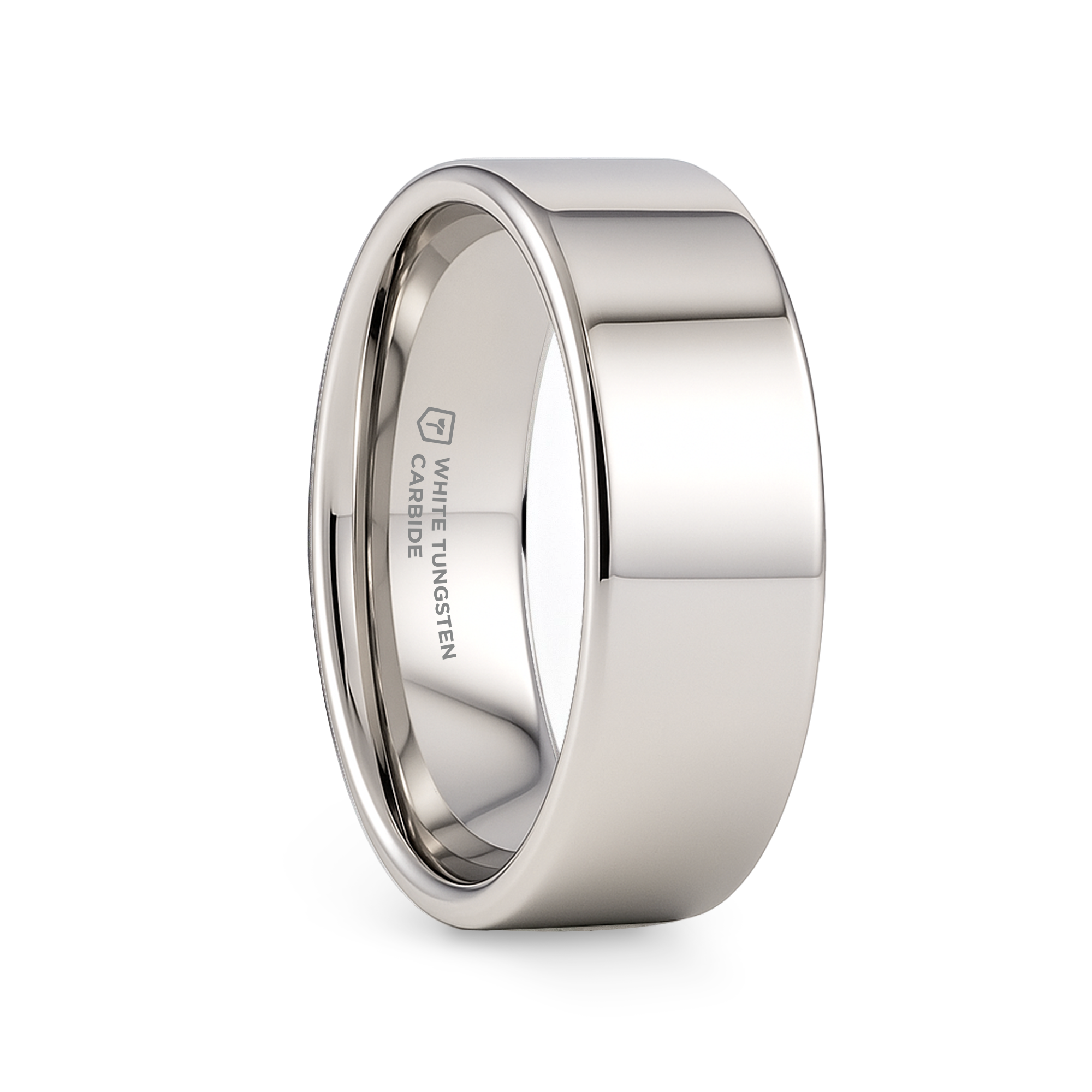 STOCKTON Flat White Tungsten Wedding Ring with Polished Finish - 2mm - 12mm