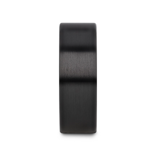 DRAKON Flat Pipe Cut Brush Finished Black Ceramic Wedding Band - 2mm - 12mm