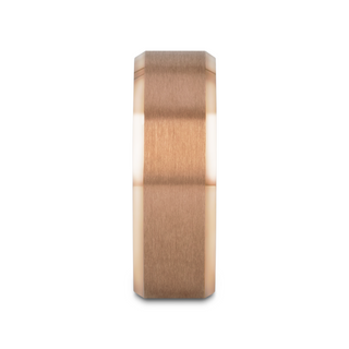 GLORY Rose Gold Plated Brushed Finish Center Titanium Men's Wedding Band With Polished Beveled Edges - 8mm