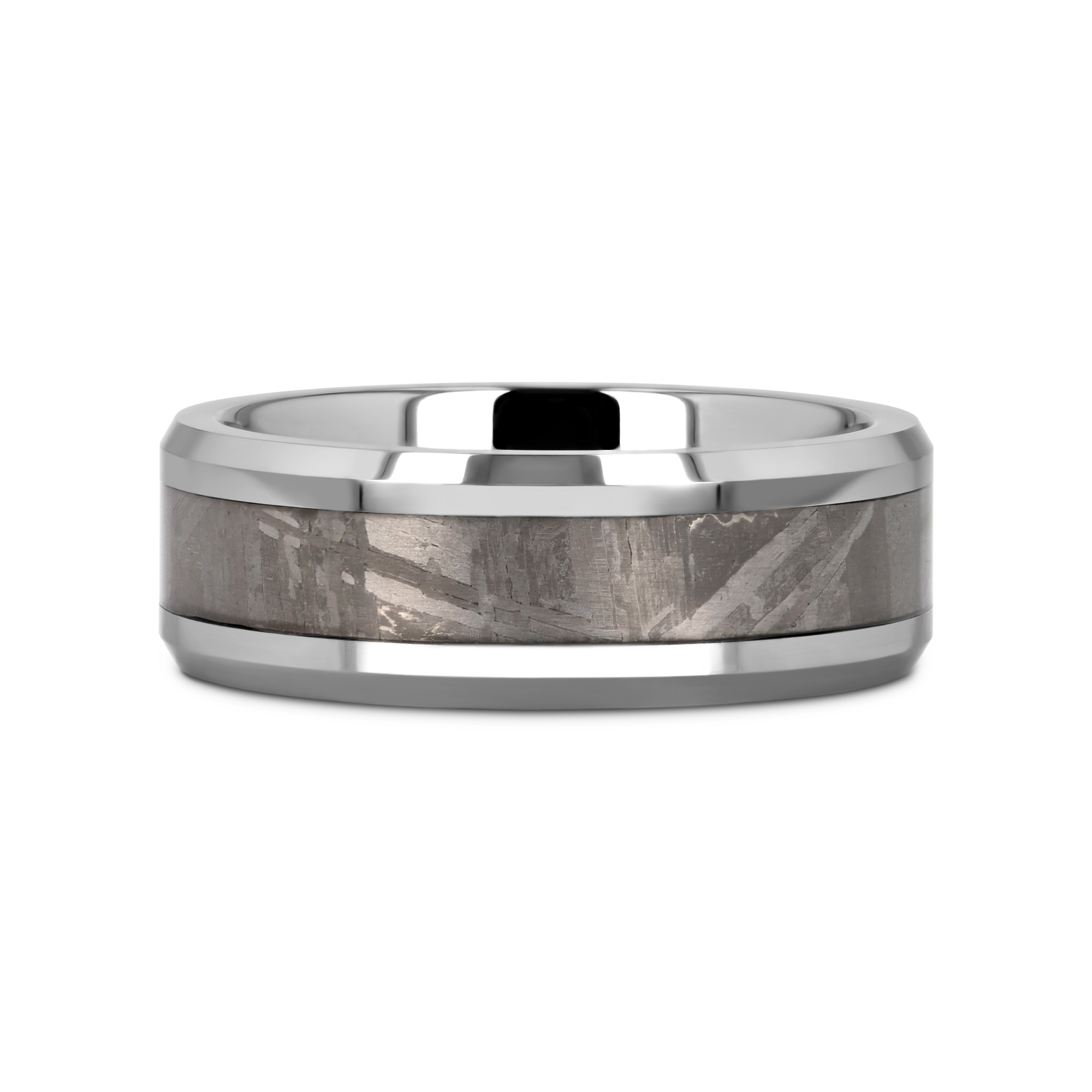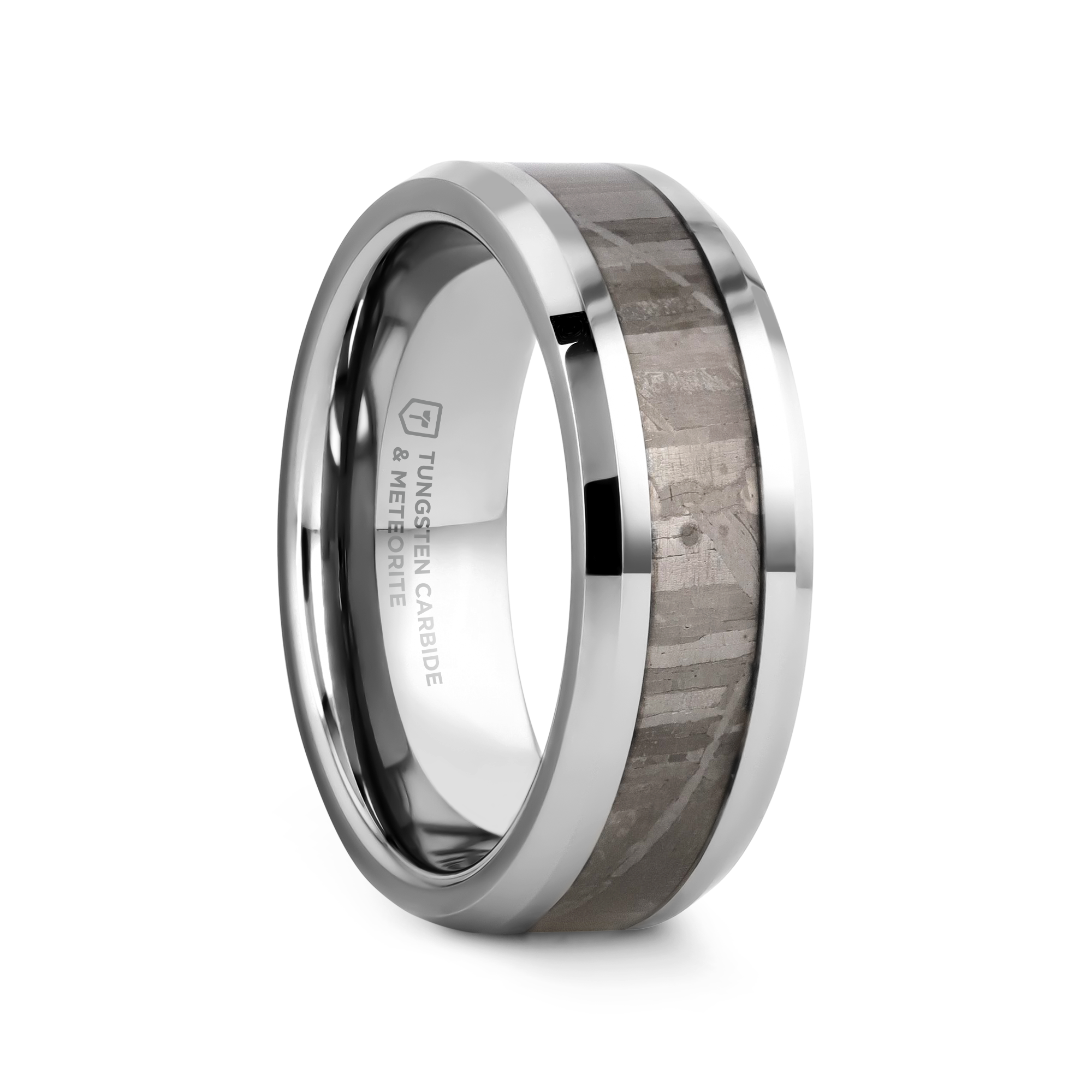 Genuine Celestial Meteorite Inlay Tungsten Carbide ring with Flat, beveled edges by Thorsten - 8mm