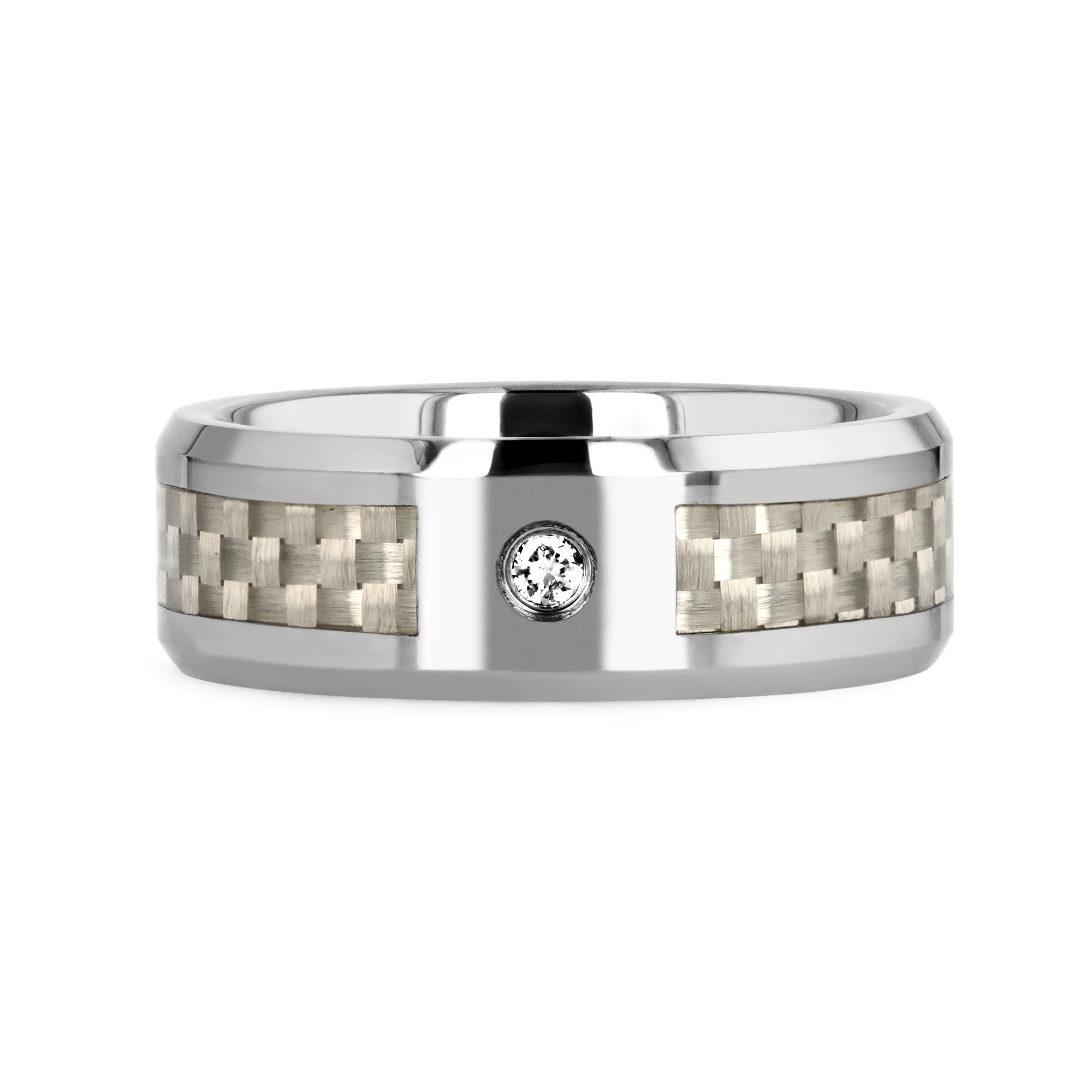 ROYCE Tungsten Carbide Wedding Band with White Carbon Fiber and White Diamond - 8mm